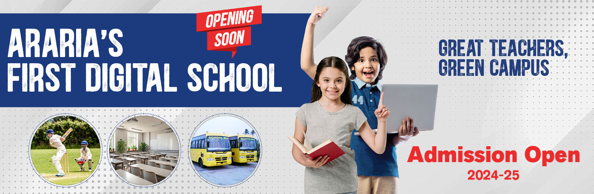 Large classrooms, tech tools, sports field, auditorium for events.